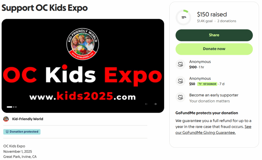 We strive to keep all our programs and events free for children and families. If you’d like, you can support the OC Kids Expo here: https://gofund.me/68072f48b